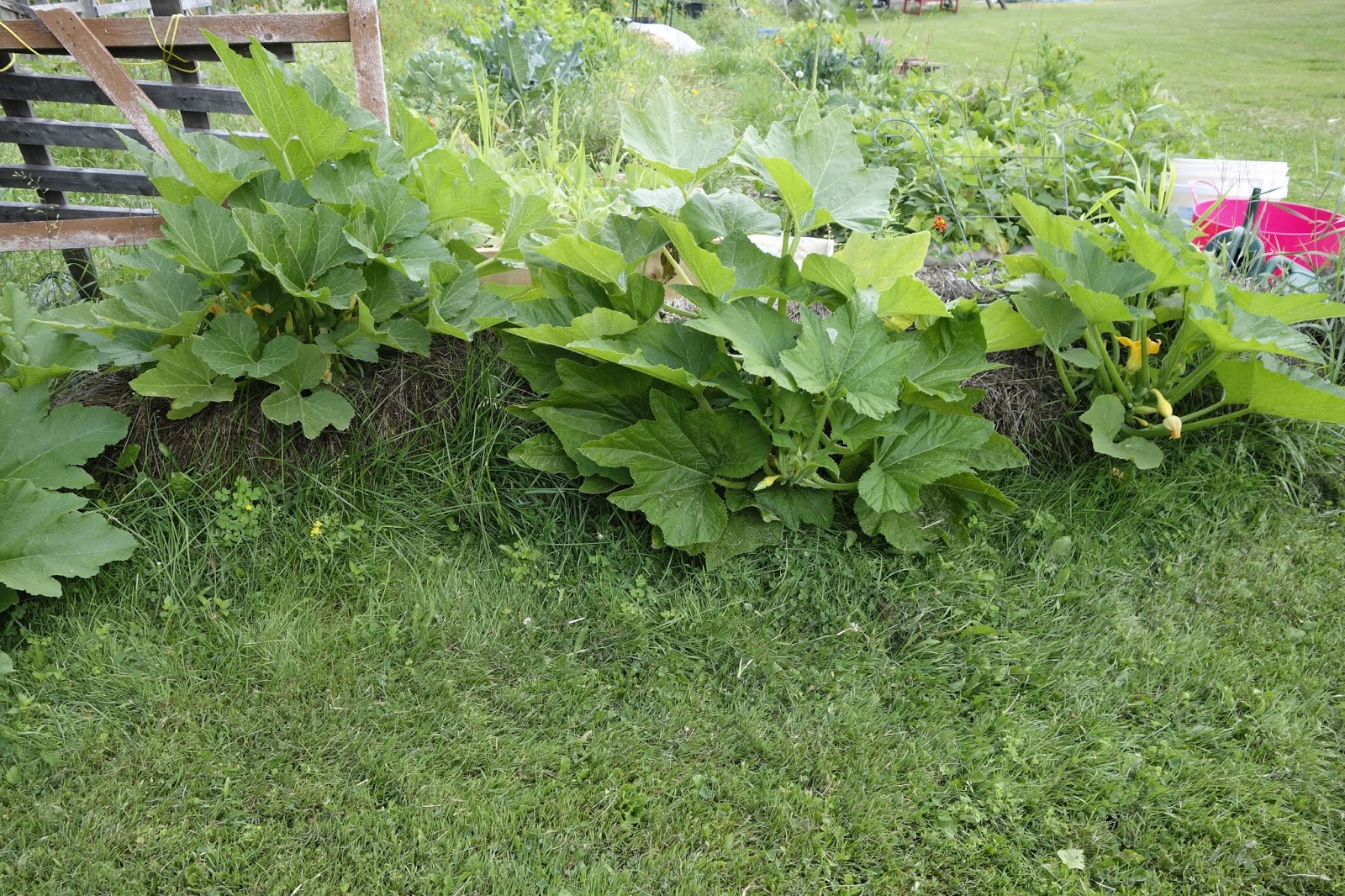I previously described the state of winter squash in my two dug gardens. This part two is pretty much all about the Cucurbits that I planted in hay bales.